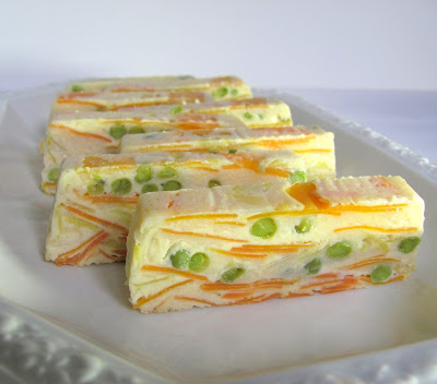In einem der legendären Viva-Heften der Zeitschrift "Brigitte", die ich seinerzeit nur wegen dieser Rezepte-Beilagen gekauft hatte, stieß ich wieder auf jene Gemüseterrine, die ich schon einmal vor Jahren zubereitet hatte und die dann ganz ungerechtfertigt in Vergessenheit geriet. Es gibt halt so viele gute Sachen, die nur darauf warten, zubereitet zu werden!